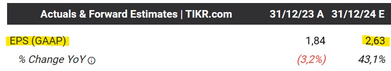 Dunque, se prima dell'annuncio dell'acquisizione gli analisti attendevano un EPS 2024 per Prysmian di 2.62 euro adesso post acquisizione abbiamo un EPS atteso che è sostanzialmente il 27% più alto rispetto a quanto era indicato pre-acquisizione.
